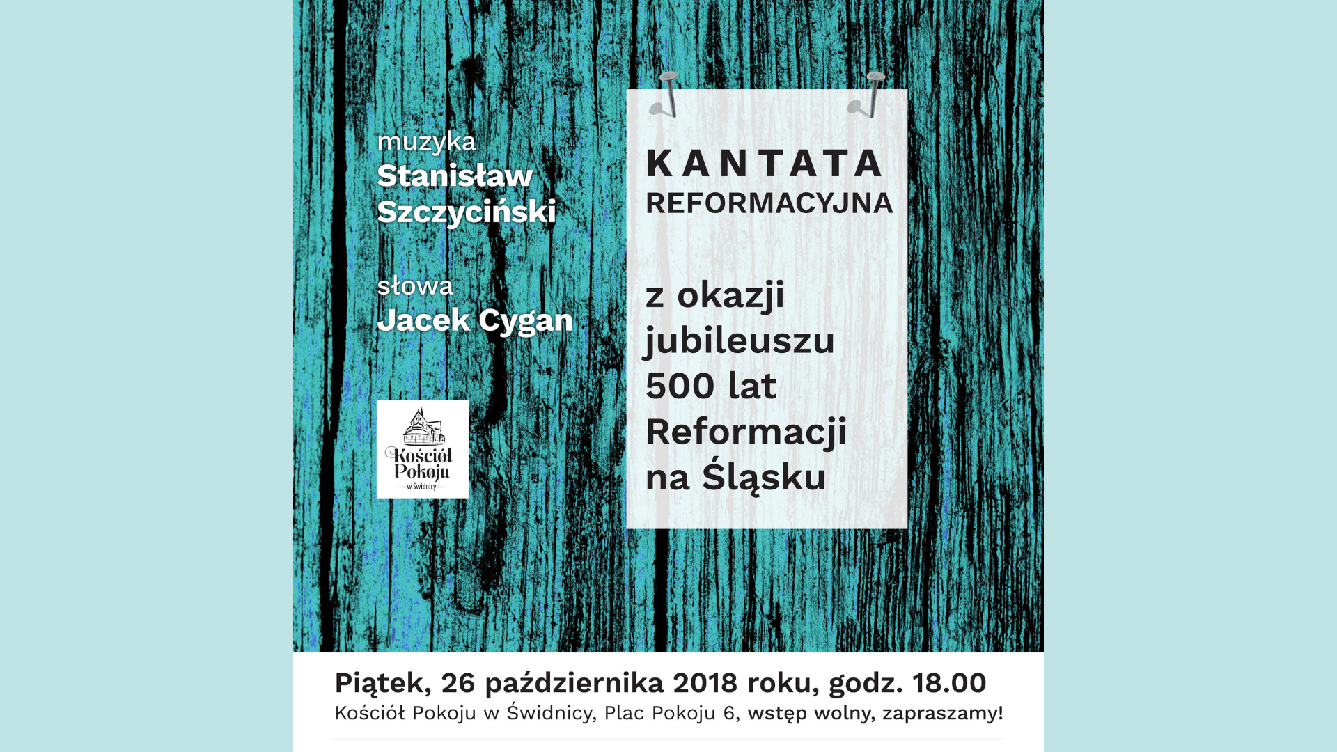 Dnia 26 października 2018 roku o godzinie 18.00 w Kościele Pokoju w Świdnicy zostanie wykonana Kantata Reformacyjna. To kompozycja Stanisława…