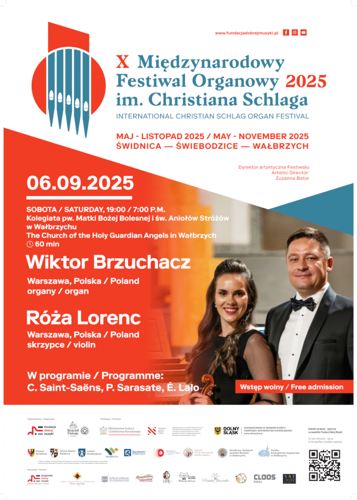 Po wakacyjnej przerwie, w sobotni wrześniowy wieczór wnętrze Kolegiaty pw. Matki Bożej Bolesnej i Świętych Aniołów Stróżów wypełnią dźwięki skrzypiec i organów – połączenie dające niezwykle szeroką paletę barw i nastrojów. Róża Lorenc i Wiktor Brzuchacz zaprezentują repertuar, który przeniesie słuchaczy od subtelnych, lirycznych miniatur po pełne blasku wirtuozowskie popisy.
